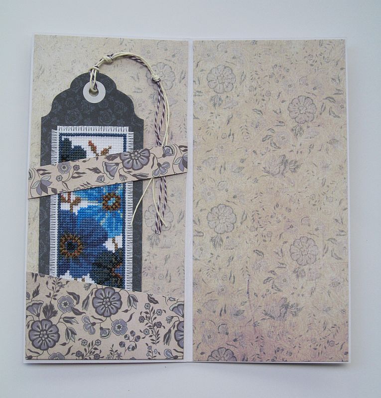 Komplecik w niebieskościach, czyli moja kolejna wariacja na temat kartki z zakładką. Tym razem zakładka ukryta jest wewnątrz kartki. Bazę kartki zbigowałam podwójnie, dzięki czemu bez problemu mieści wewnątrz zakładkę. I co najważniejsze - wchodzi do zwykłej koperty i spokojnie można wysłać pocztą z urodzinowymi życzeniami dla miłośnika lektury. Wzór: Vervaco.
